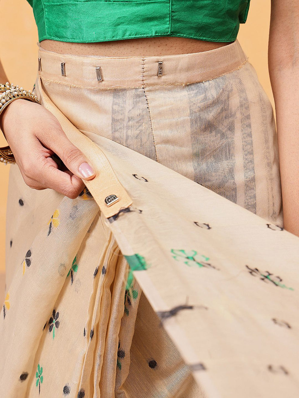 • Fabric: Saree – Cotton Jamdani (Cotton 90%, Polyester 10%); Blouse – Pure Cotton