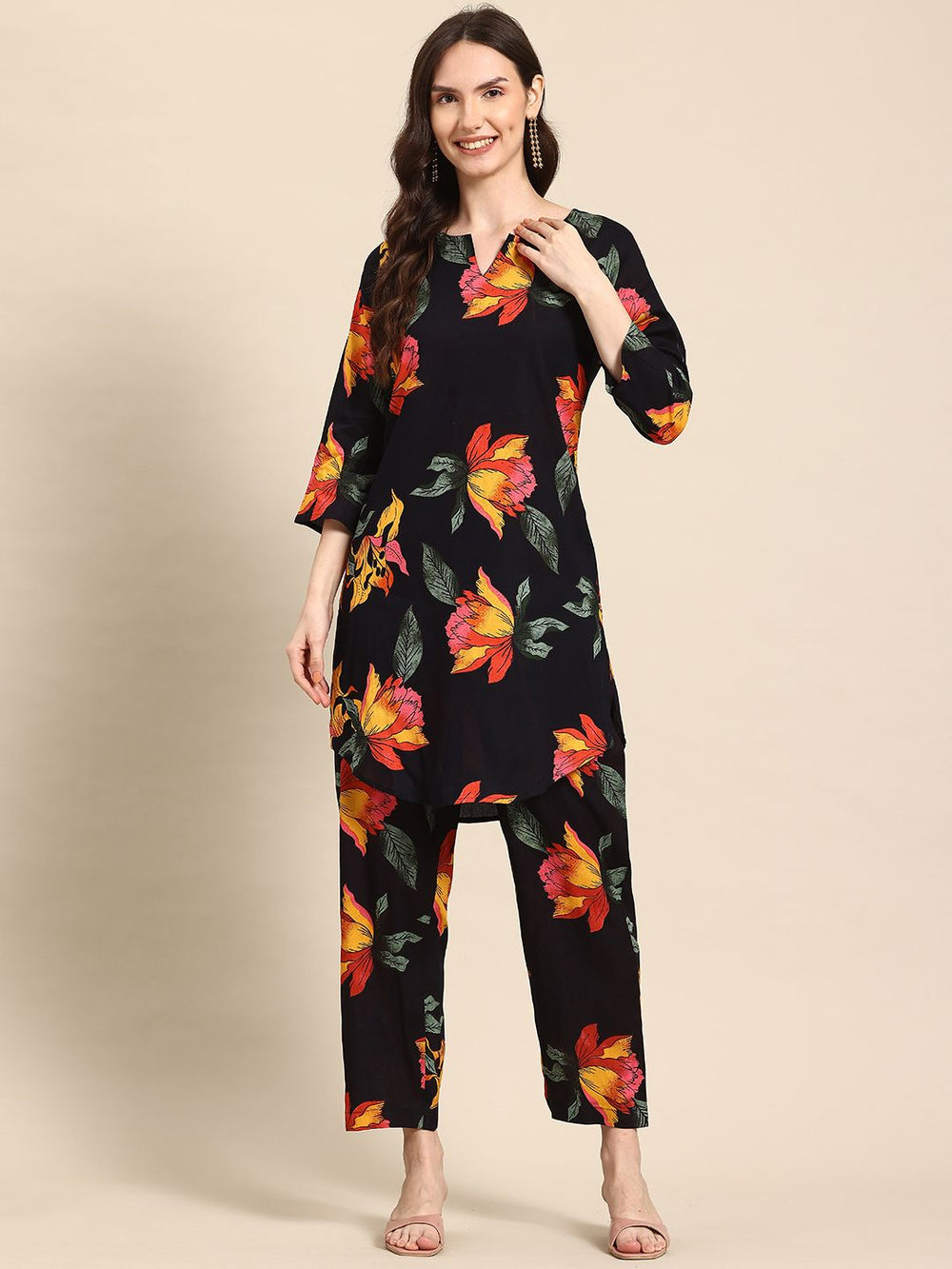 A chic floral printed co-ord set designed for comfort and style, perfect for casual occasions.