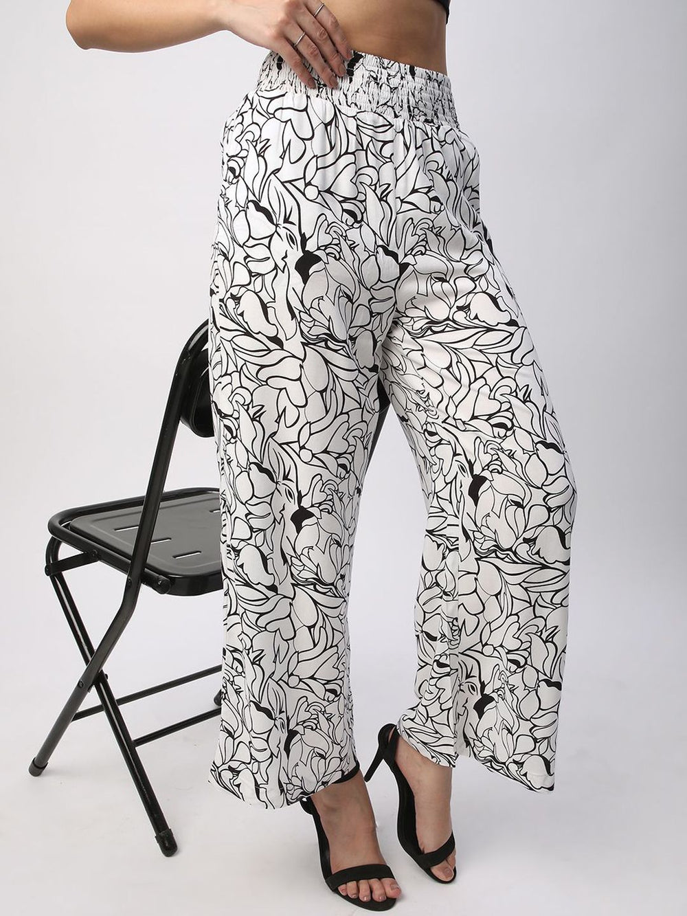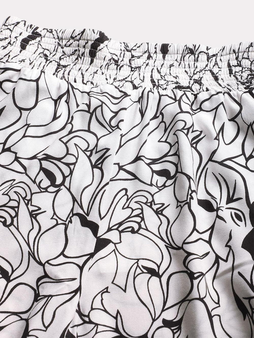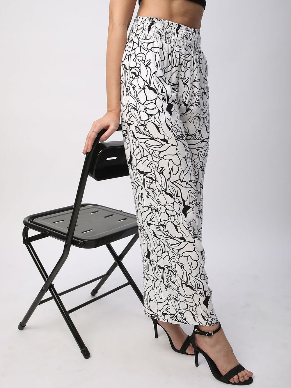 Versatile black and white printed palazzos designed for both comfort and style, crafted from soft viscose rayon with a relaxed wide-leg fit.
