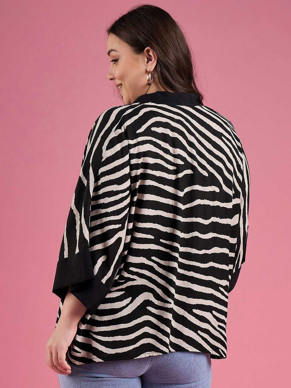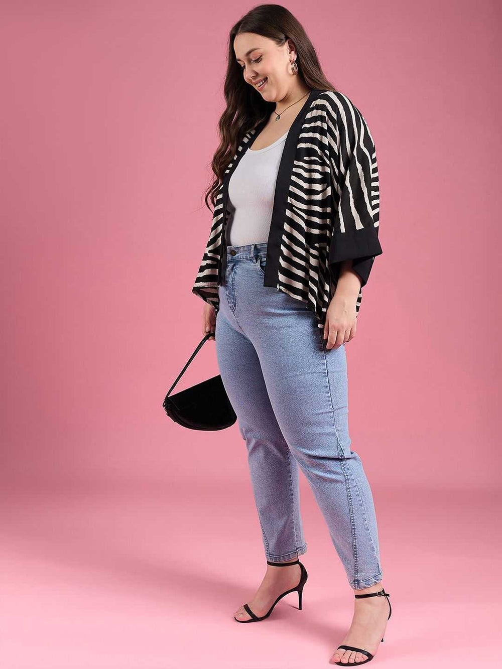 • Style: Regular shrug with open front and striped pattern