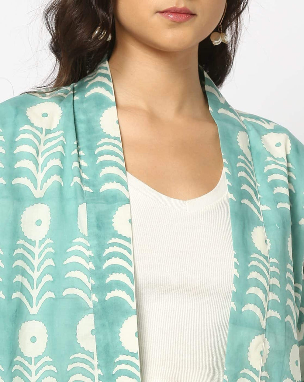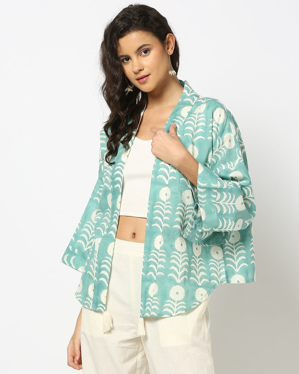 Elevate your layering with this block printed cotton shrug featuring eye-catching tassels. Perfect for adding a touch of handcrafted allure to any look.