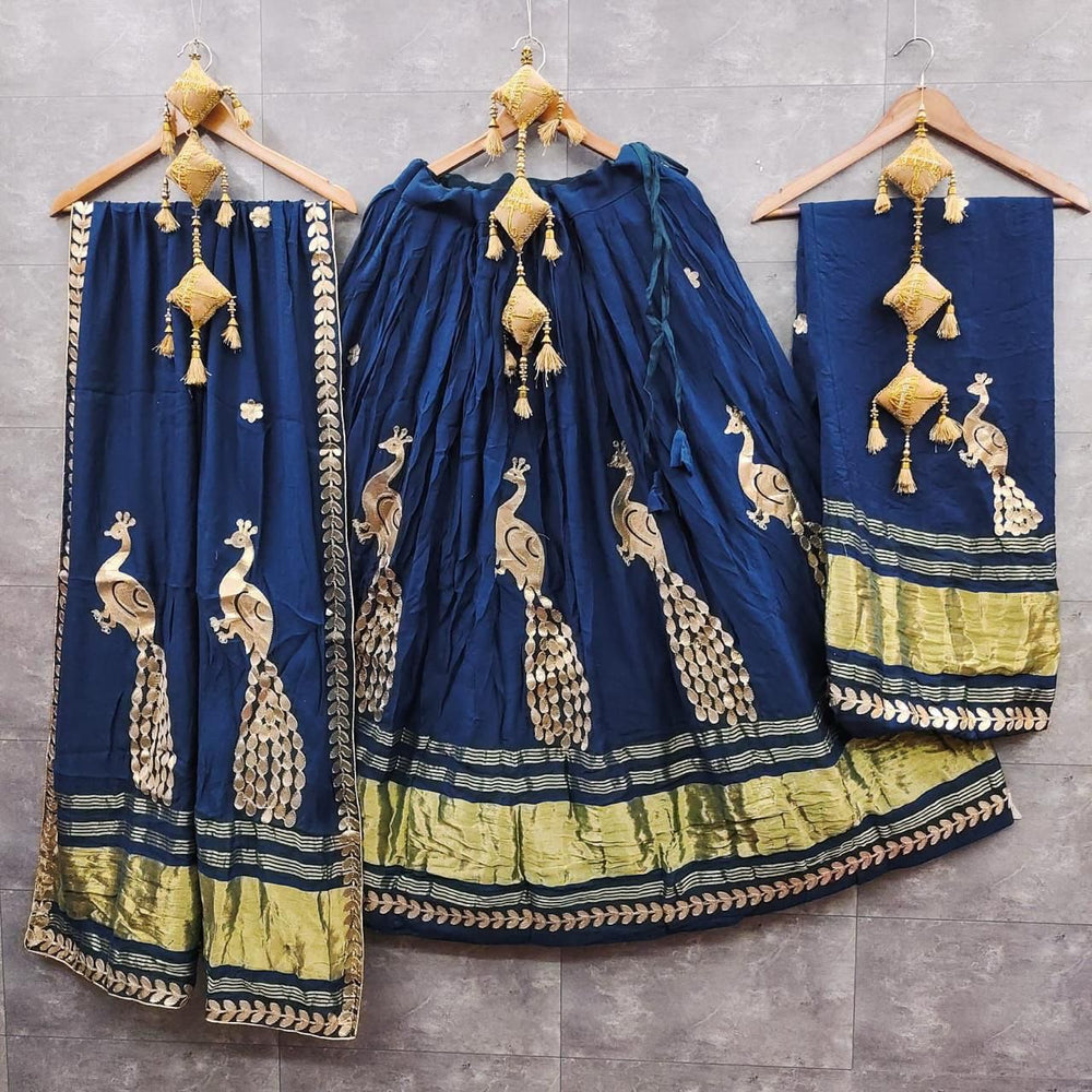 Elevate your wedding look with this elegant blue lehenga set crafted from premium modal gajji silk and adorned with detailed gota work.