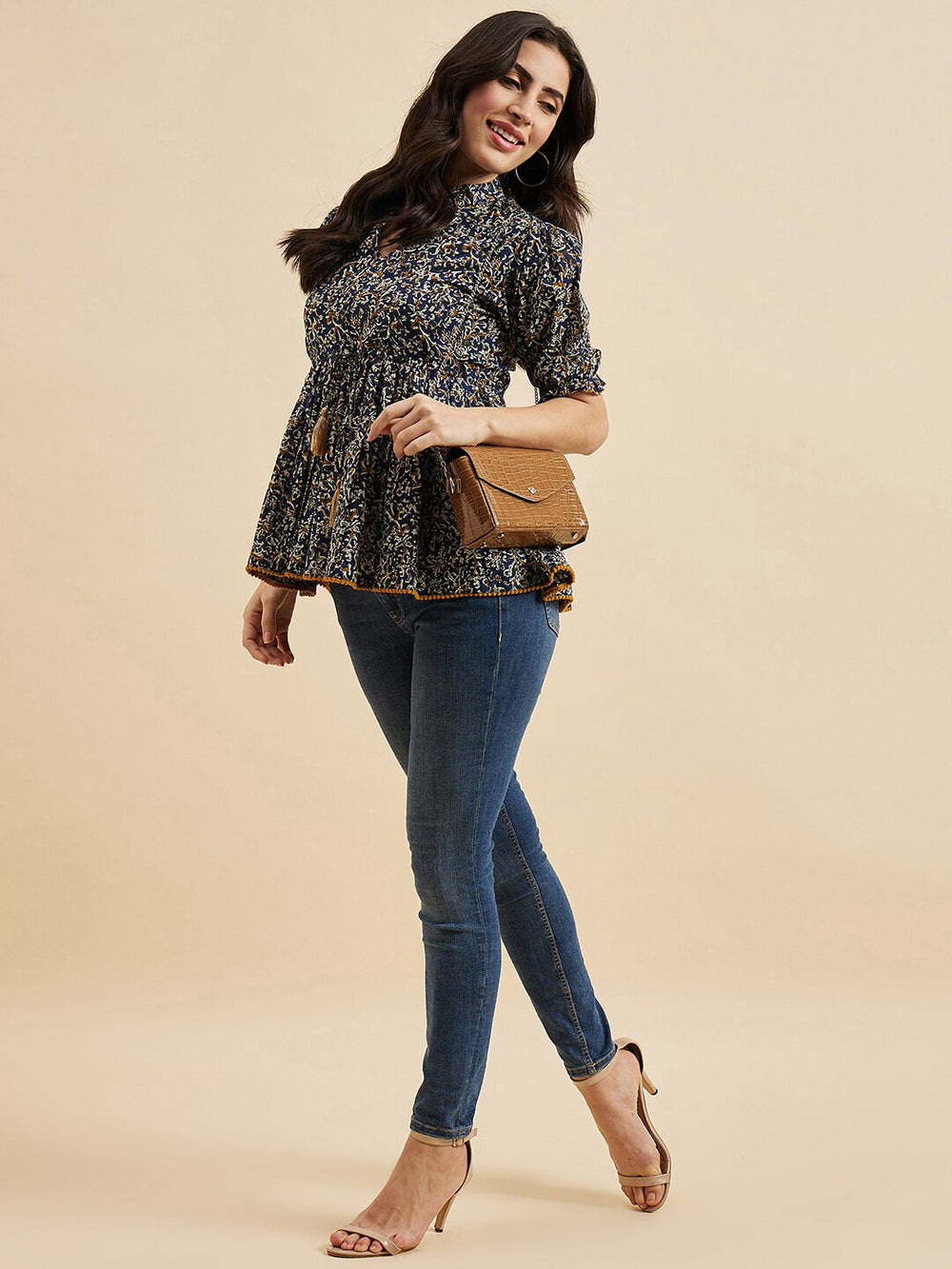 • Style: Regular peplum top with floral print