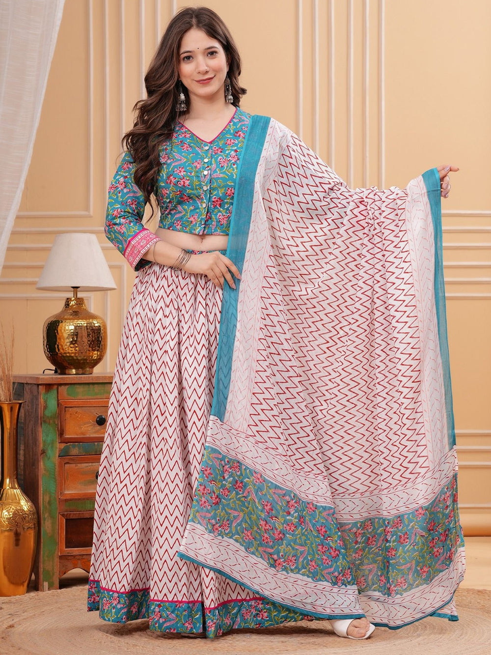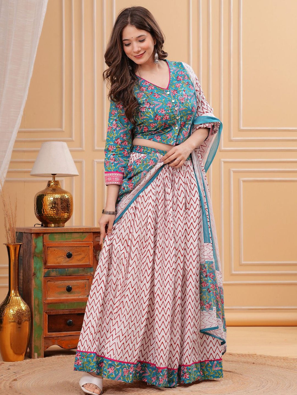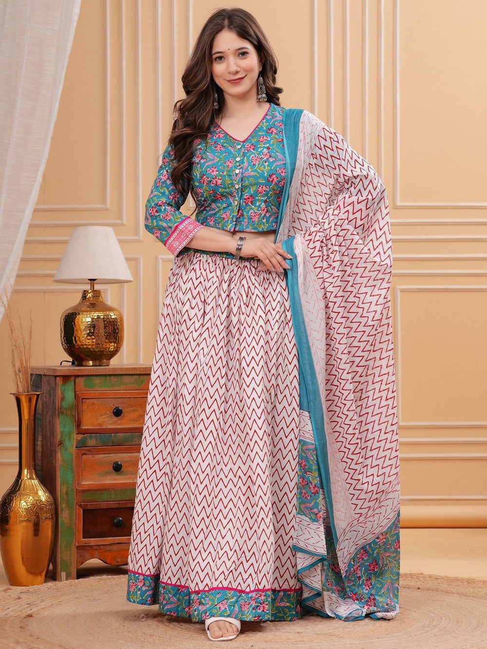 • Style: Lehenga choli set with dupatta, fully printed with block print technique