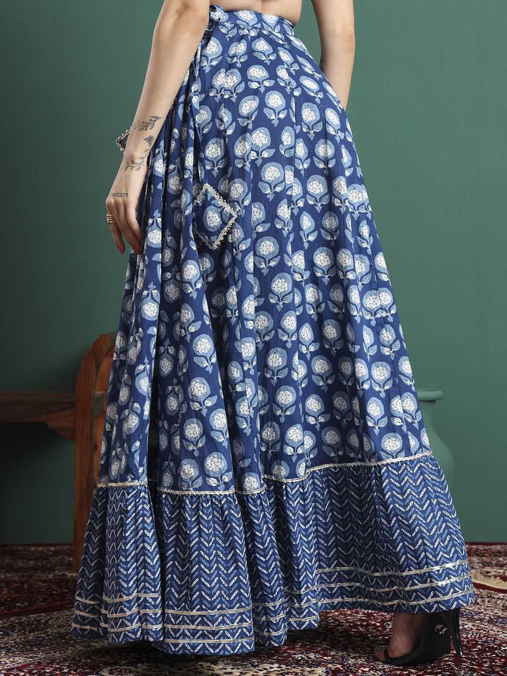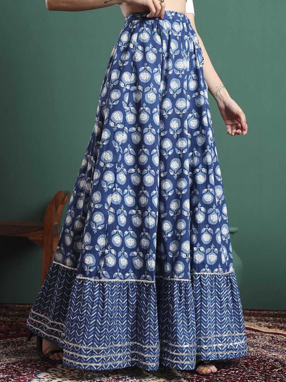 • Style: Flared maxi skirt with elasticated waistband and printed design