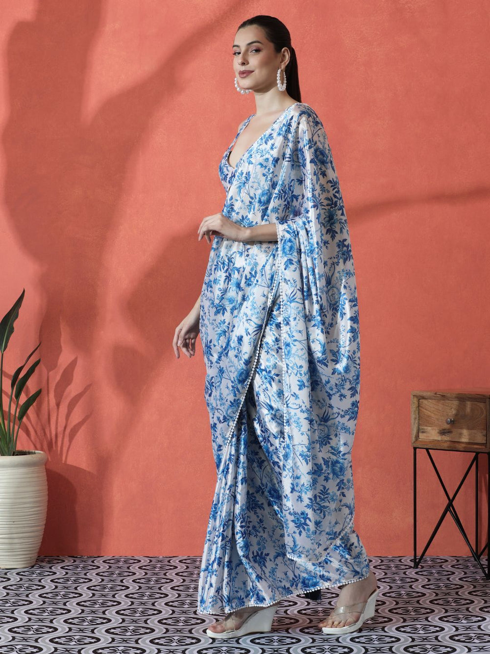 • Style: Ready to wear saree with floral digital print and embellished detail