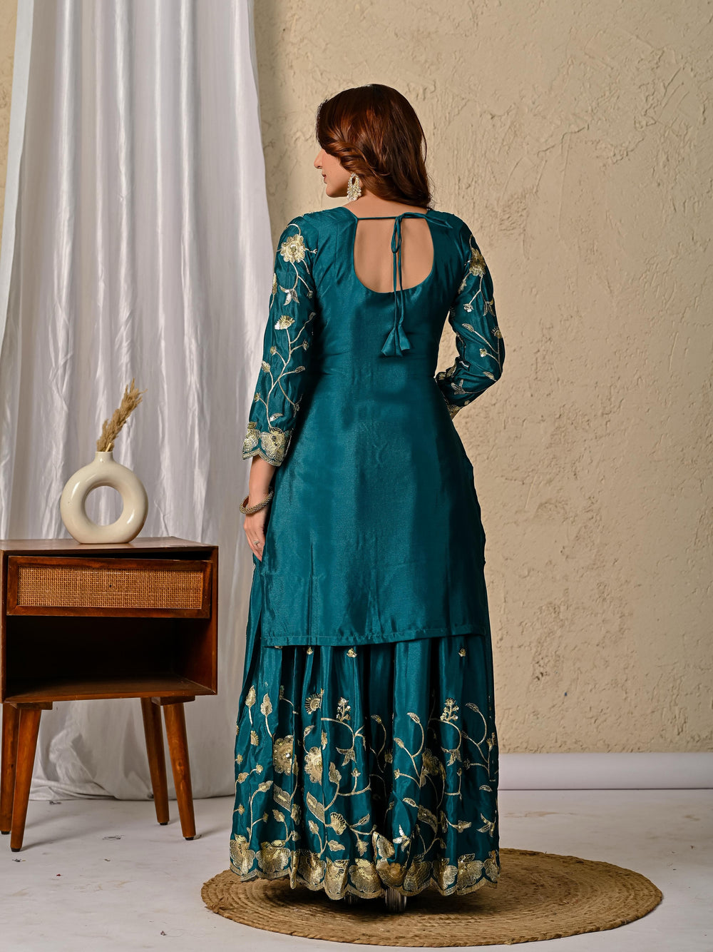- Top: Heavy chinnon silk with 5mm sequin embroidery; Lining: Micro cotton