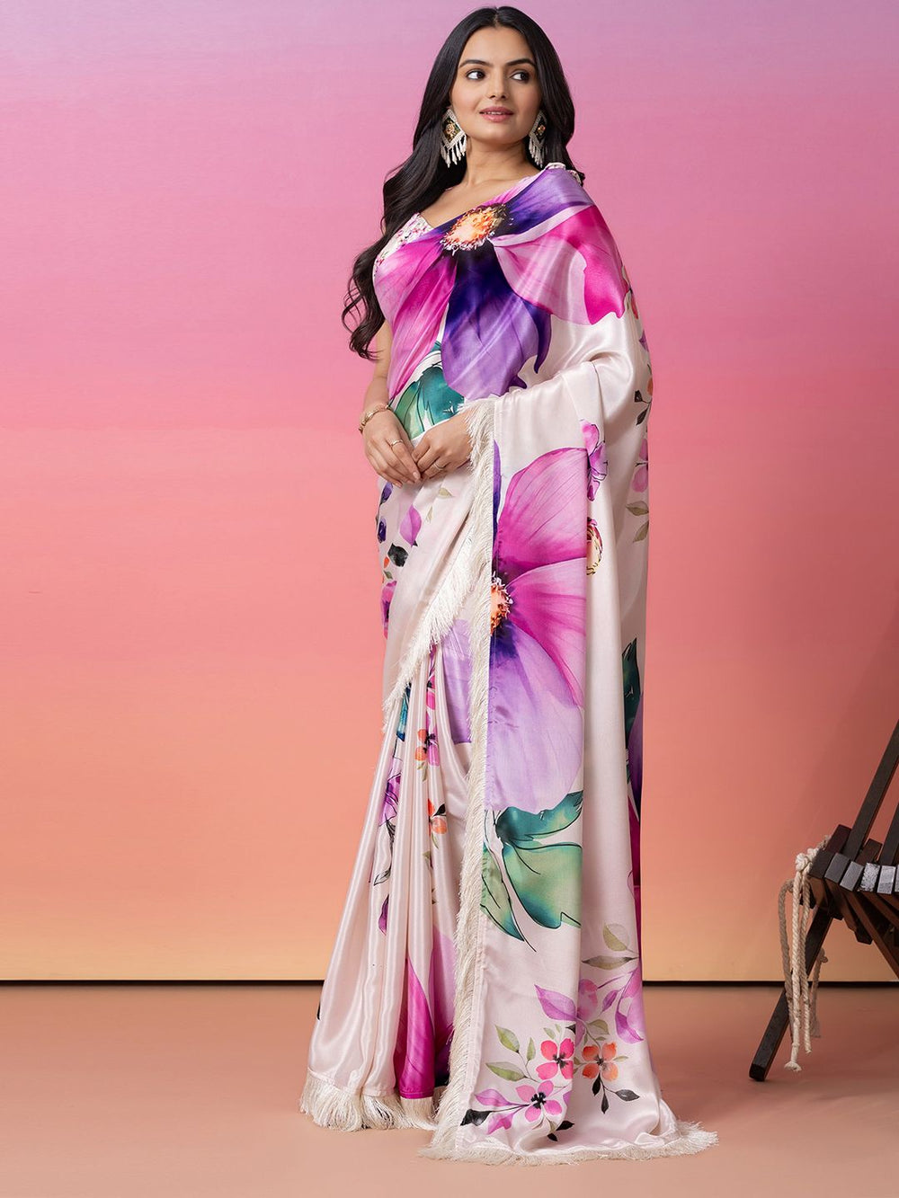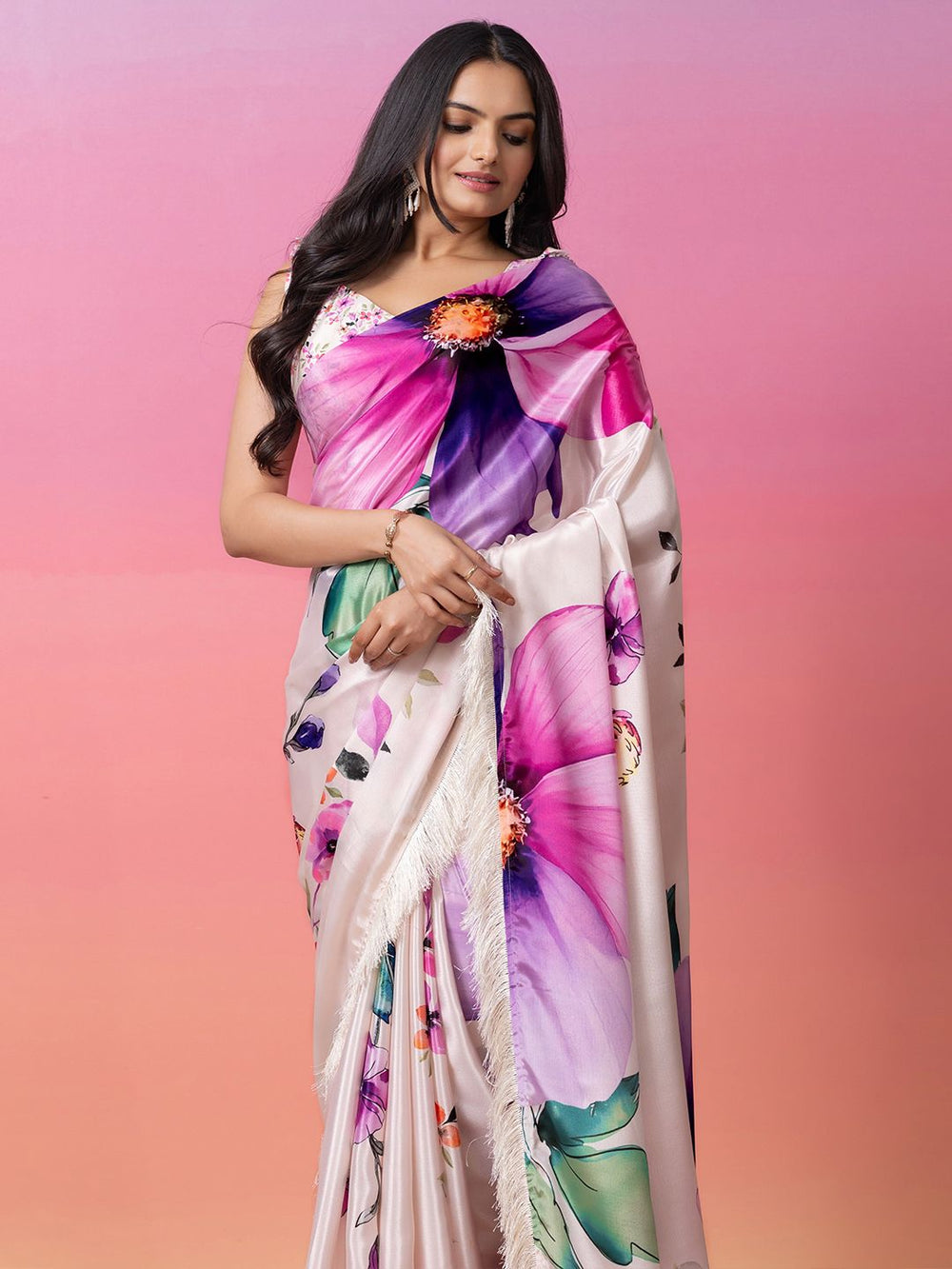 • Style: Ready to wear saree with floral print and embroidered border