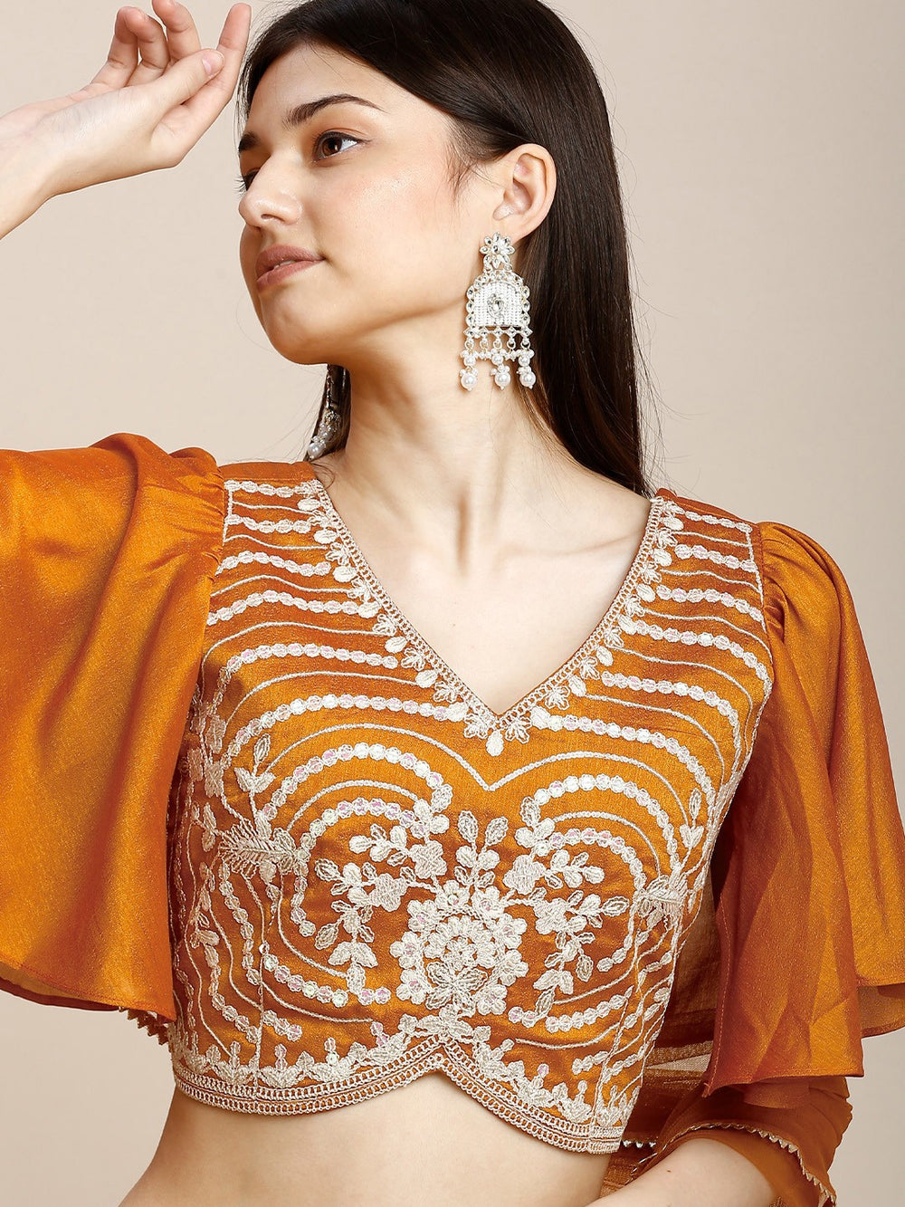 Ornamentation: Floral embroidery on blouse