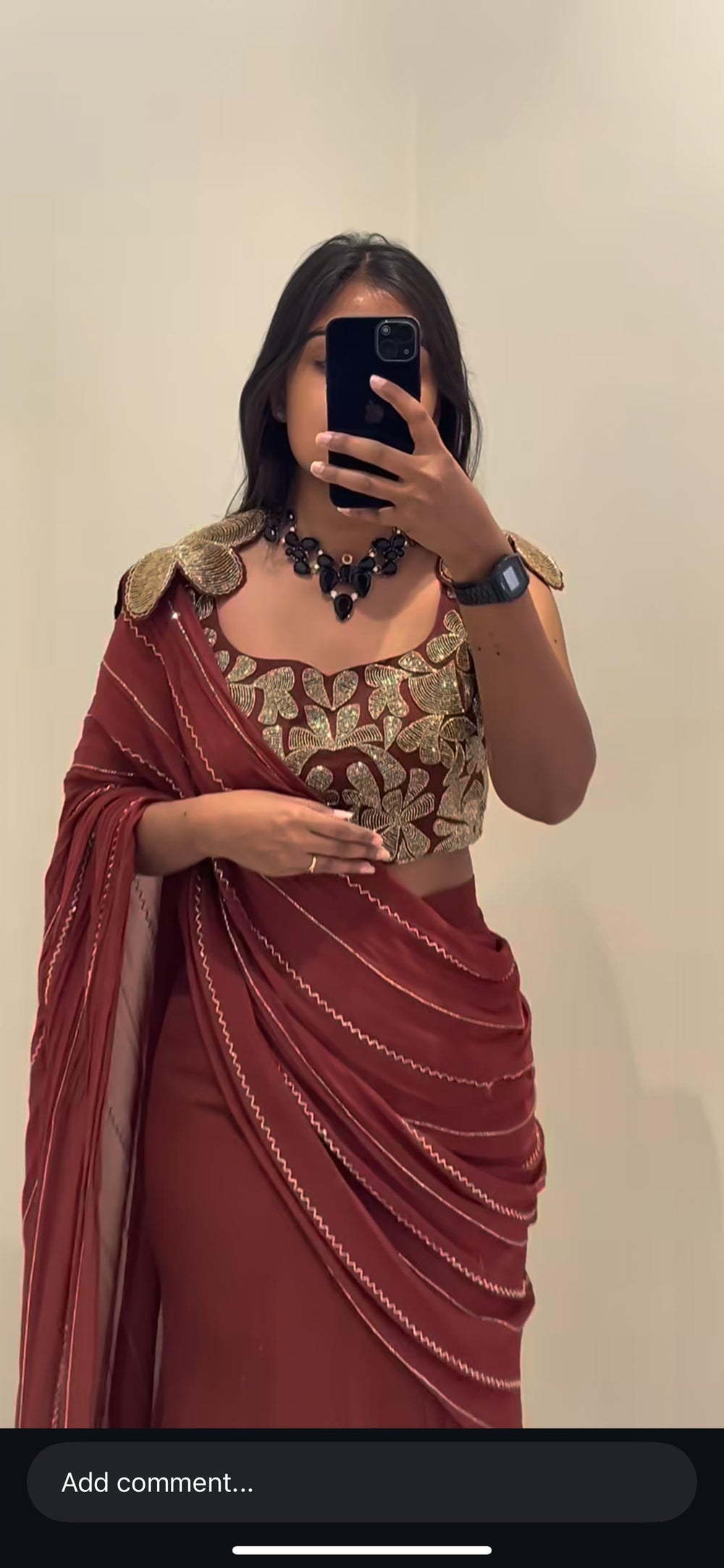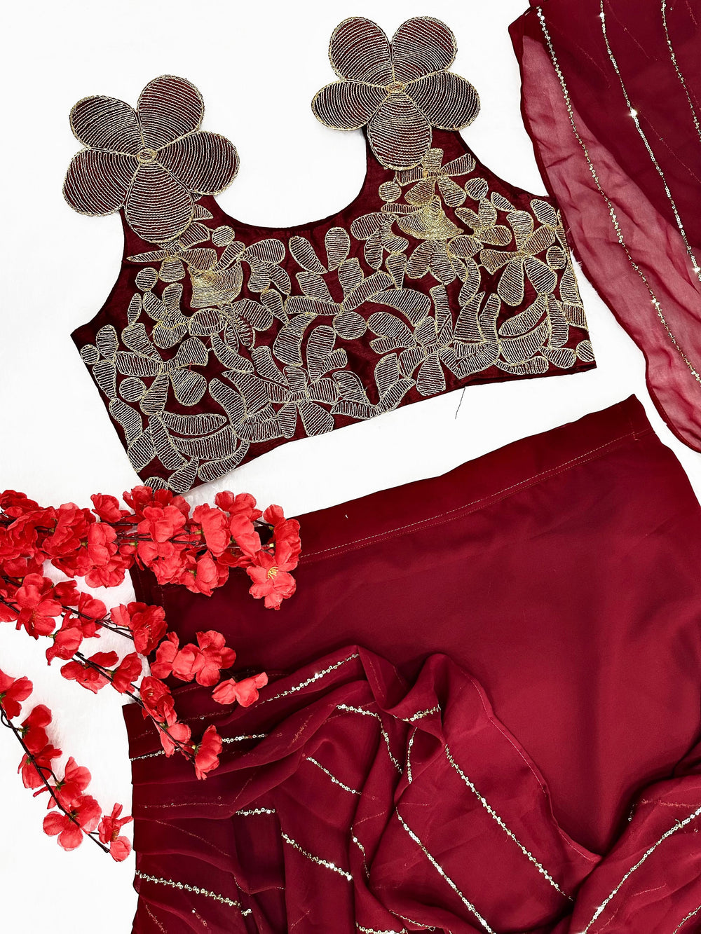 • Pallu Length: 3 meters, attached to lehenga with embroidery sequins work