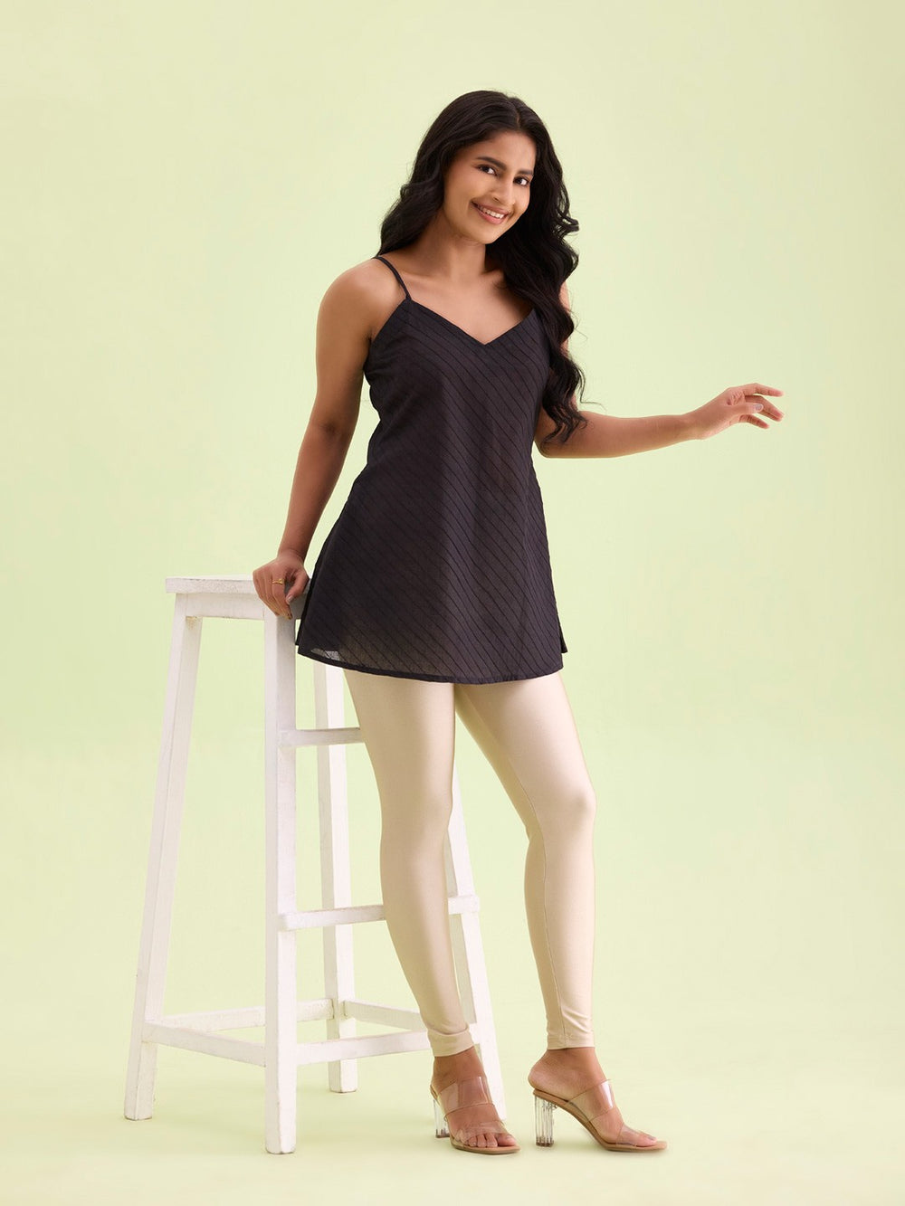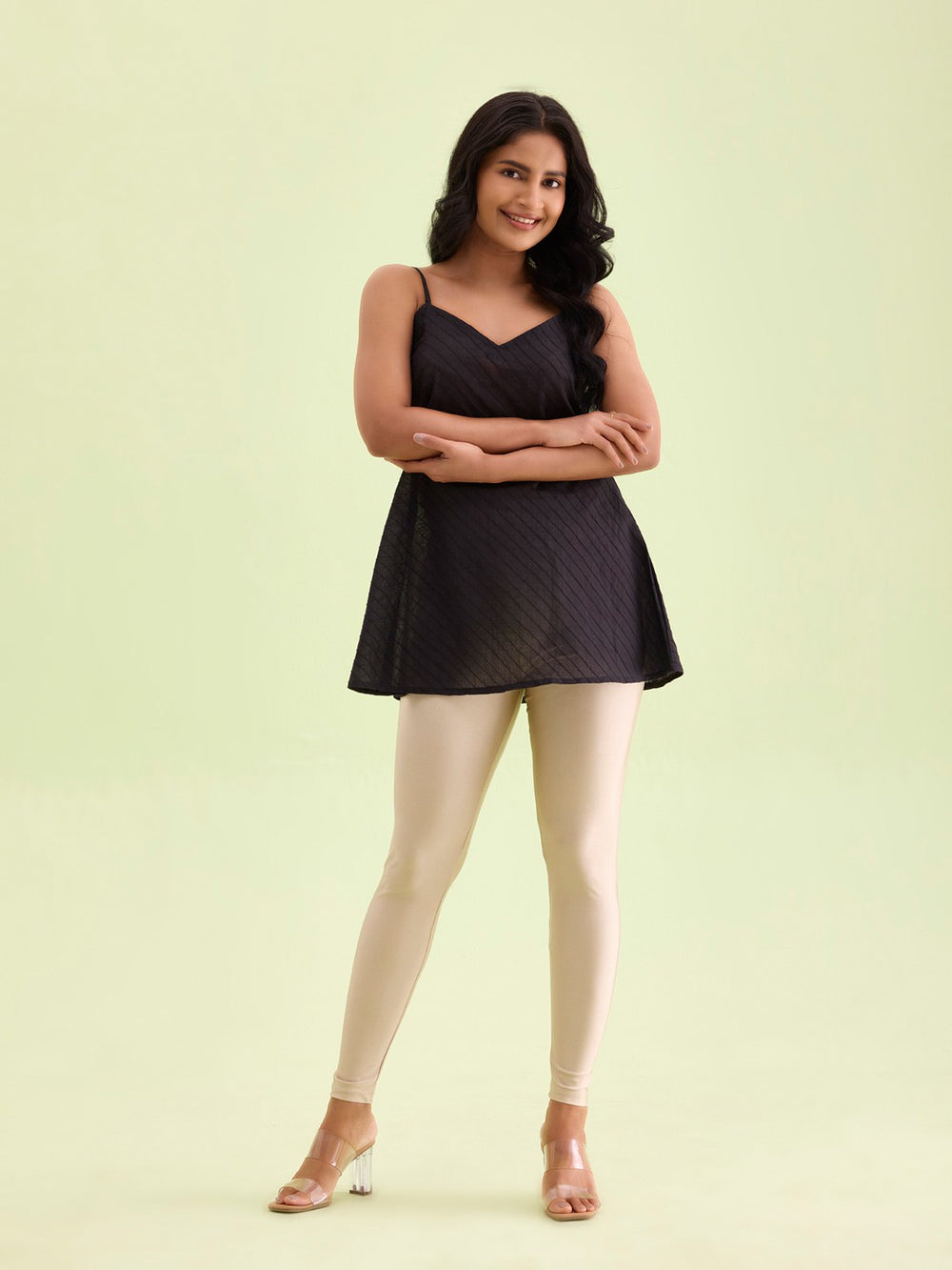 Style: Ankle-length shimmer leggings