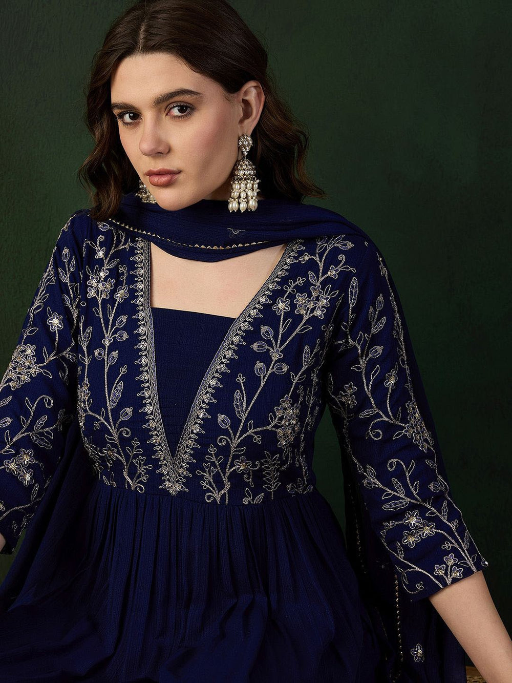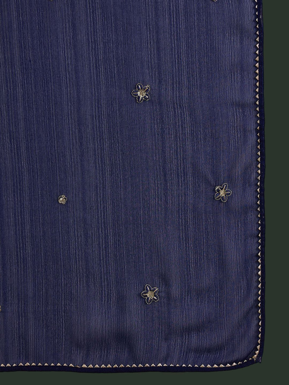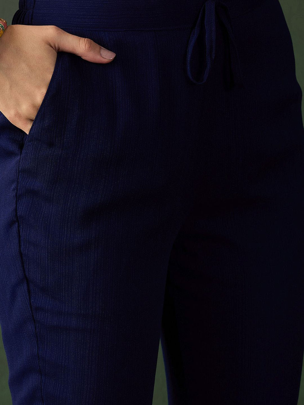 Trousers: Solid navy blue, drawstring closure, partially elasticated waistband