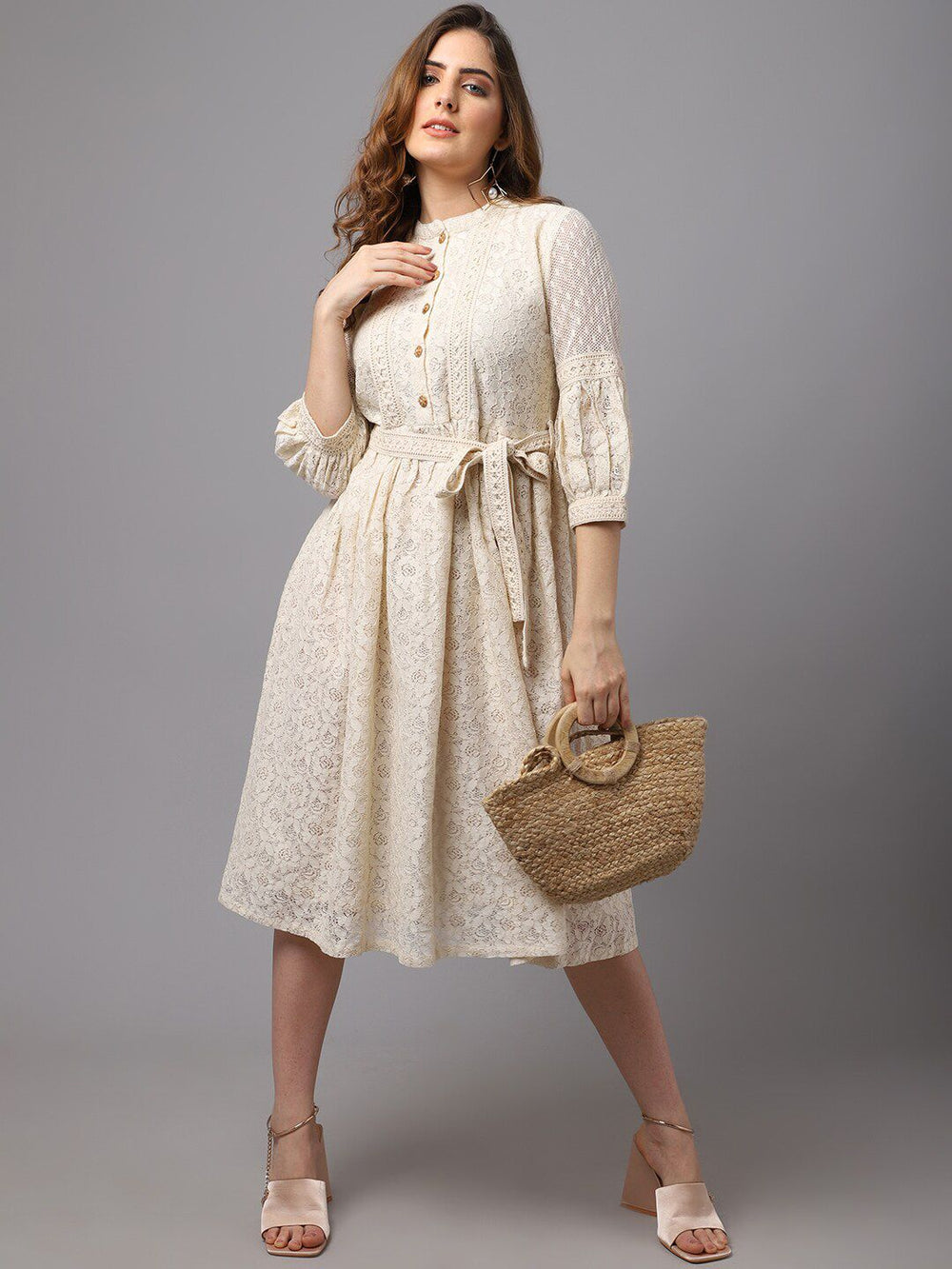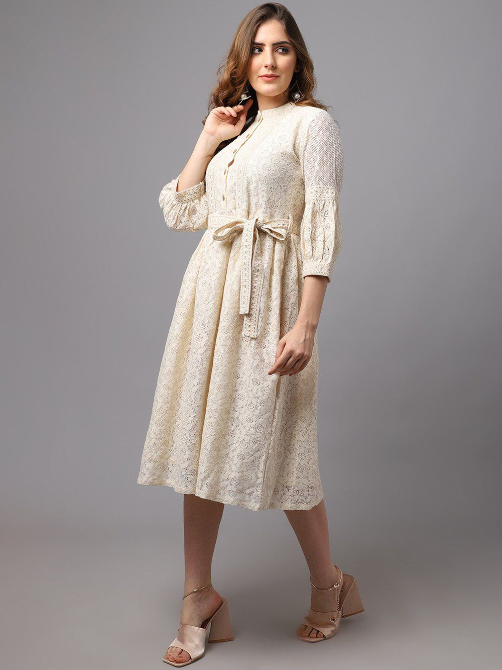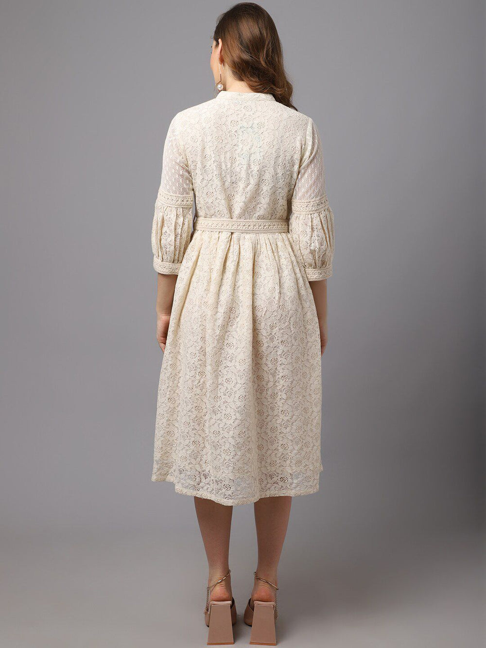 • Style: Off white fit & flare midi dress with lace insert detailing