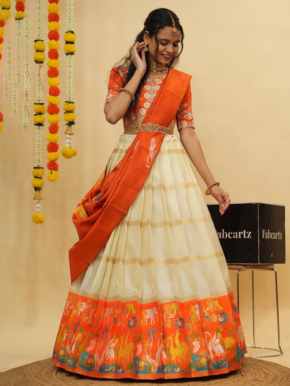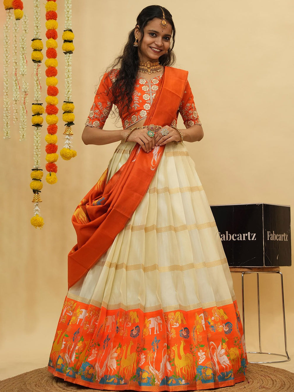 Color: Orange, Cream & Gold-toned