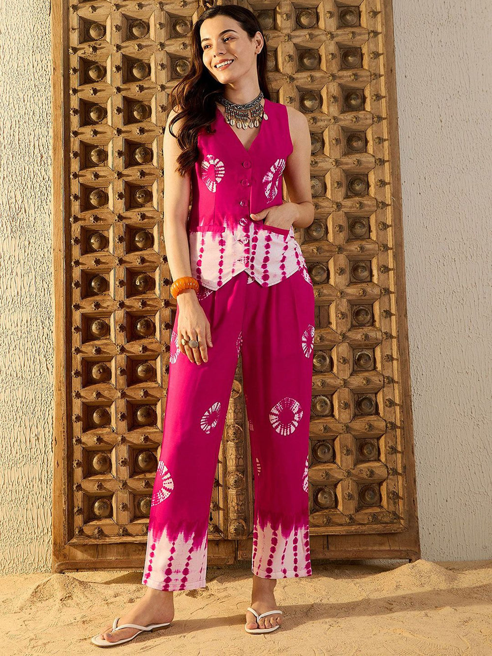 Step out in effortless style with this pink co-ord set, crafted in soft viscose rayon for all-day comfort and a chic, coordinated look.