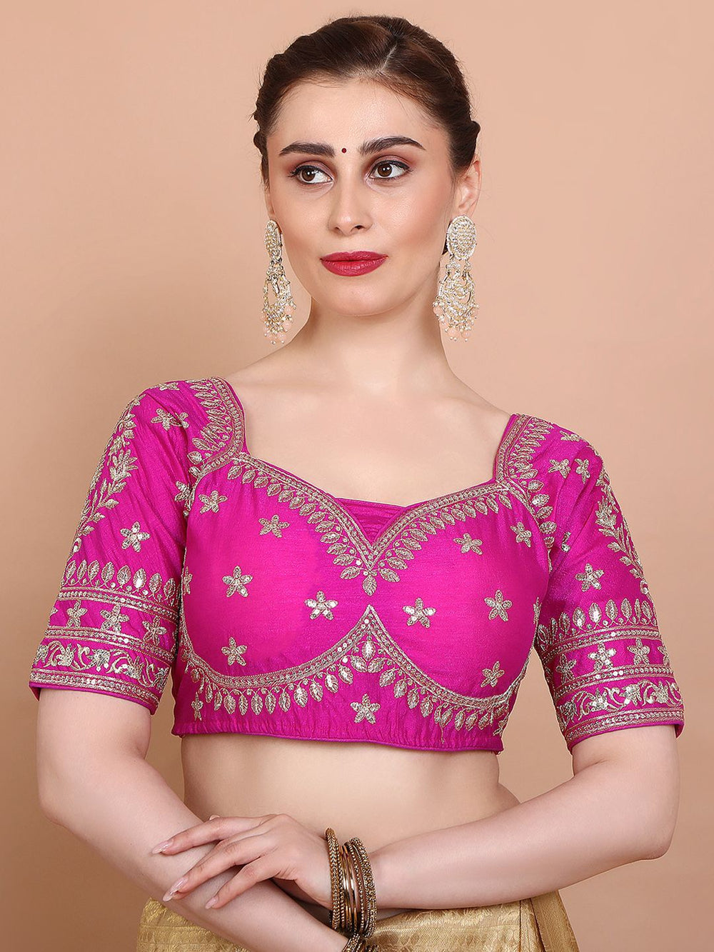 • Style: Embroidered silk saree blouse with sequin and thread detailing