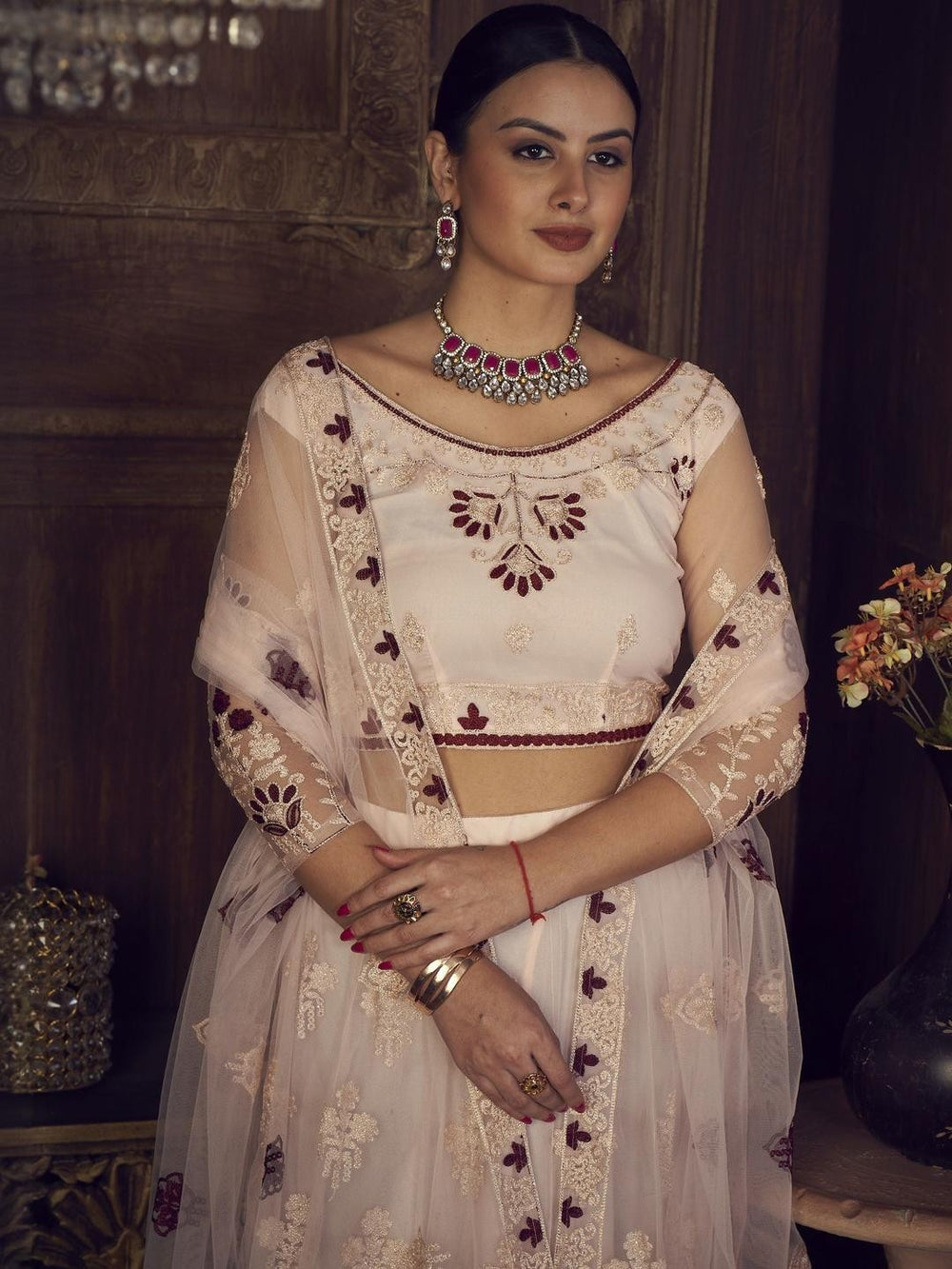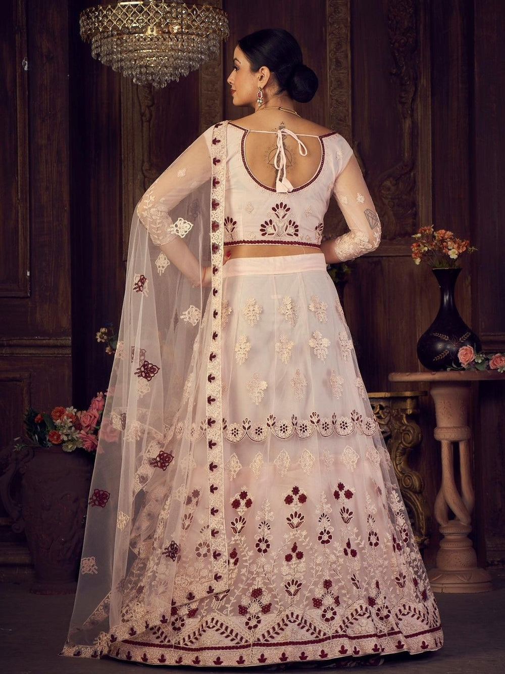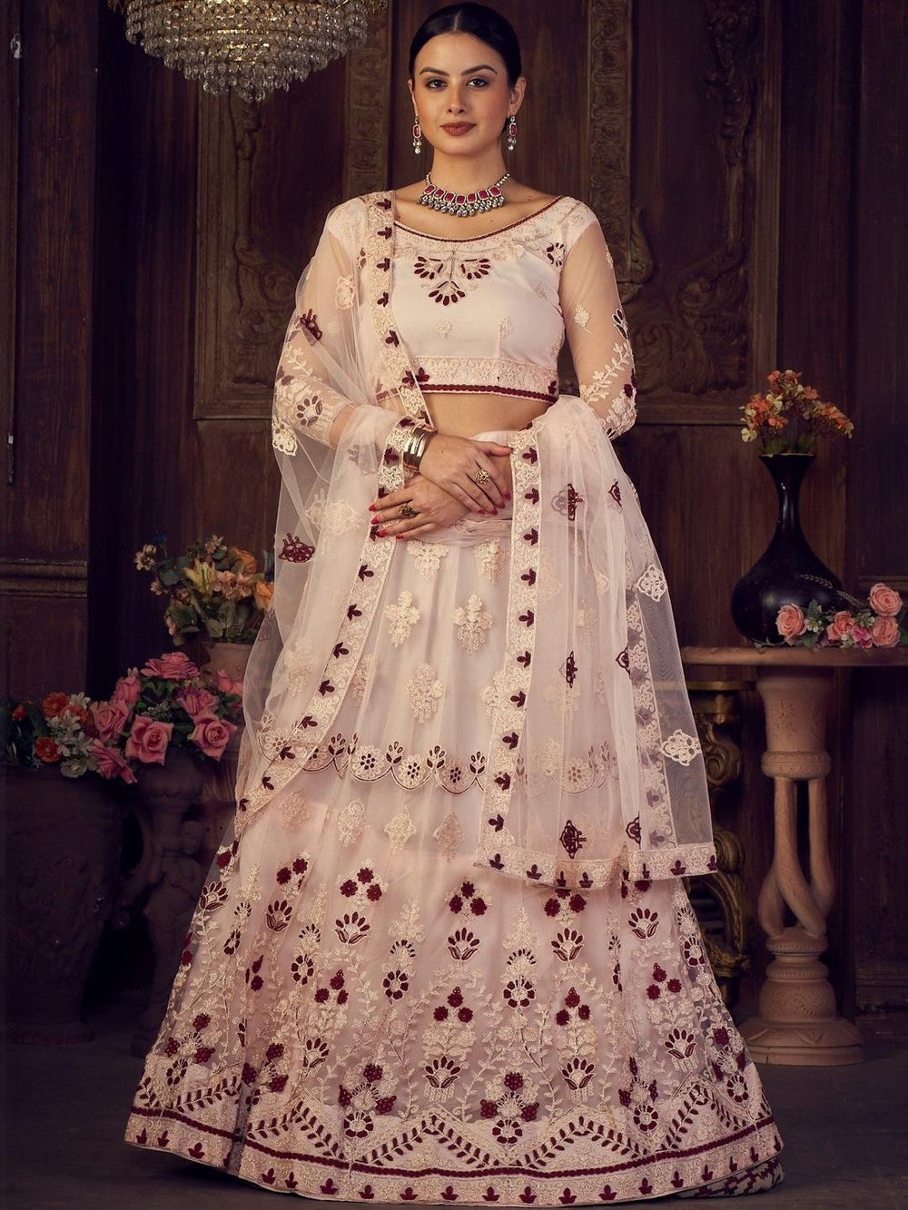 Style: Thread work embroidered lehenga choli set with semi-stitched lehenga and unstitched blouse