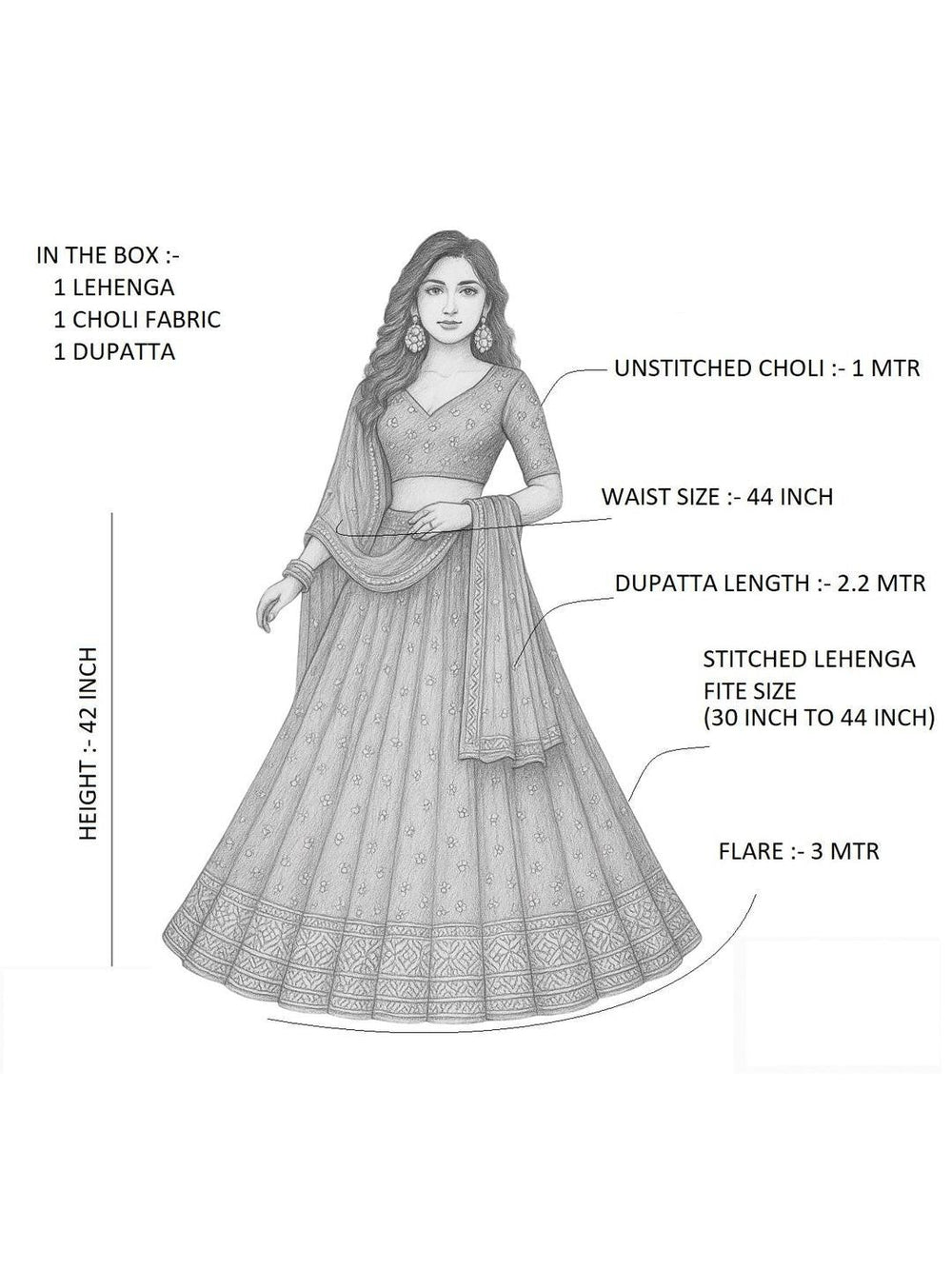 1 Semi-Stitched Lehenga, 1 Unstitched Blouse, 1 Dupatta
