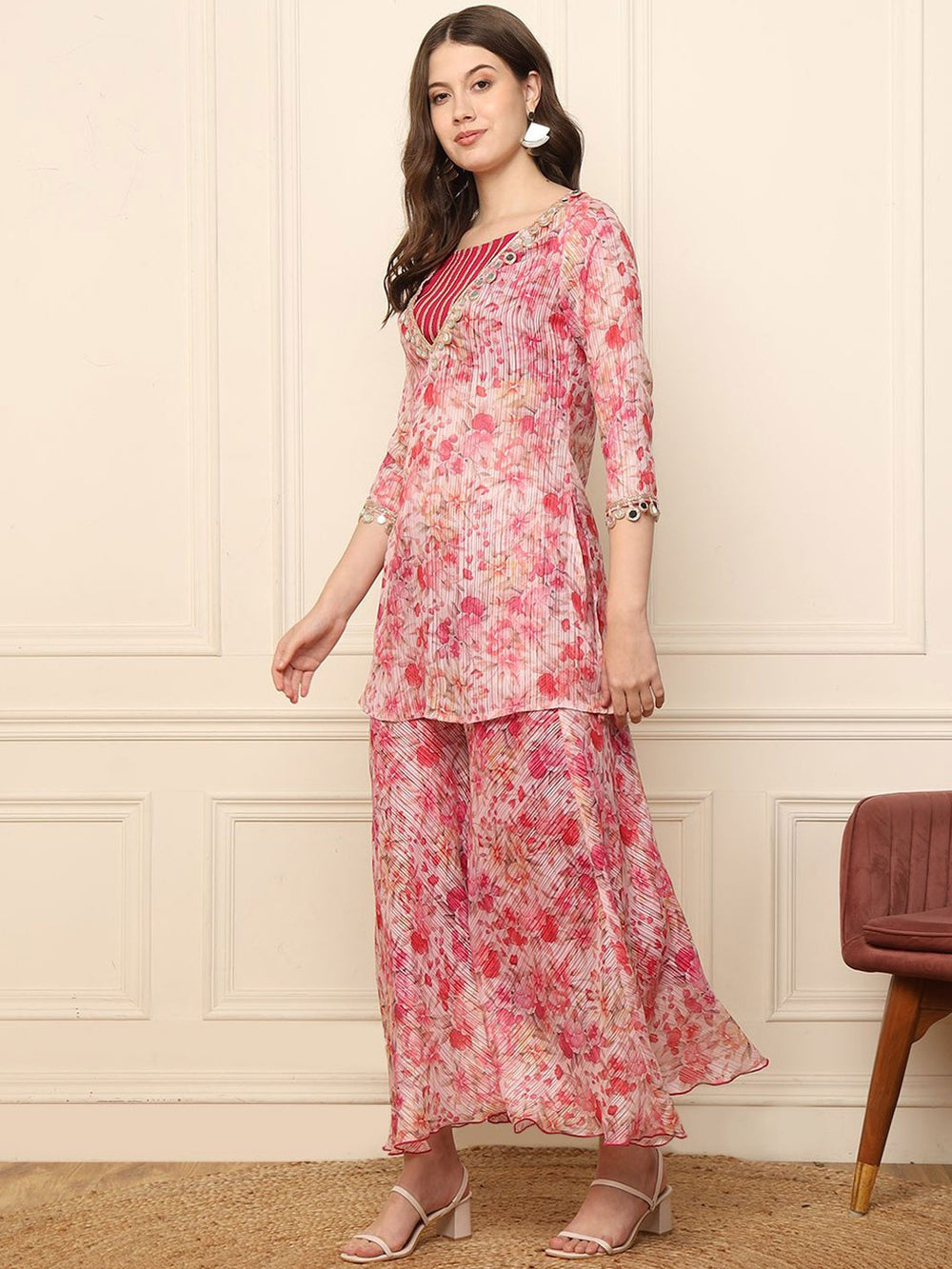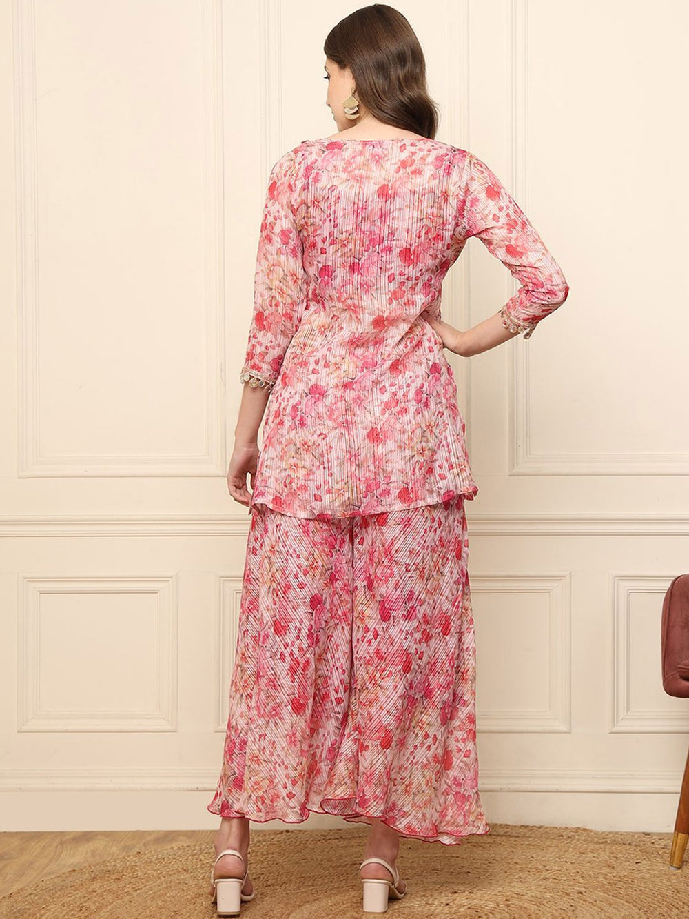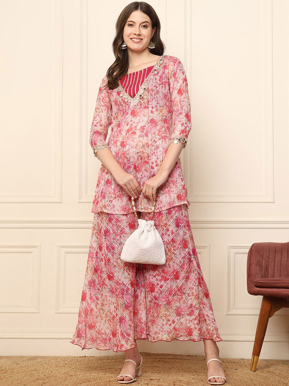 • Three-piece co-ord set with crop top, tunic, and palazzos