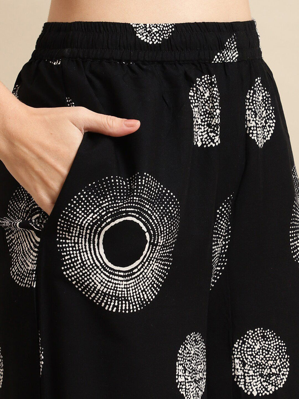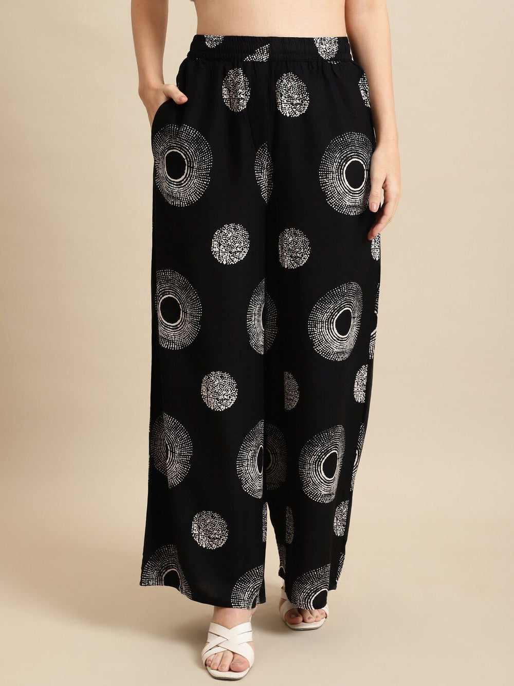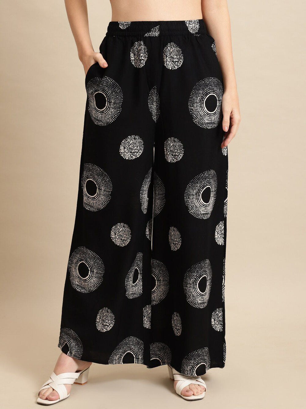 • Style: Flared fit palazzos with geometric print
