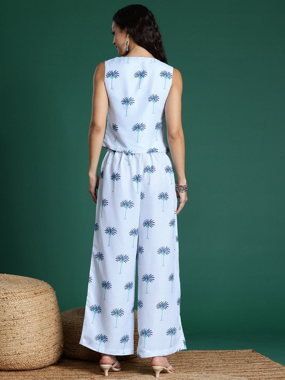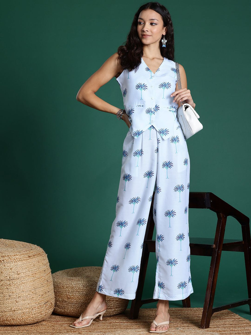• Style: Printed co-ord set with waistcoat crop top and palazzo pants