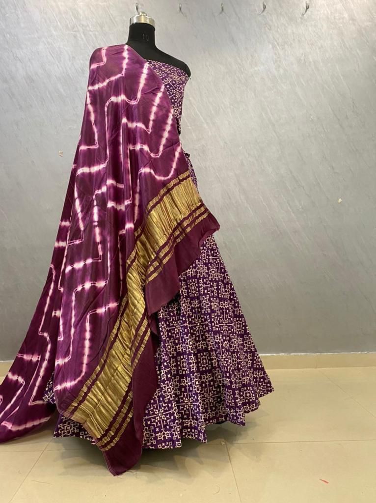 - Dupatta: Contrast soft pure gaji silk, modal (silk) dyeble shibori print, both sides lagdi patta