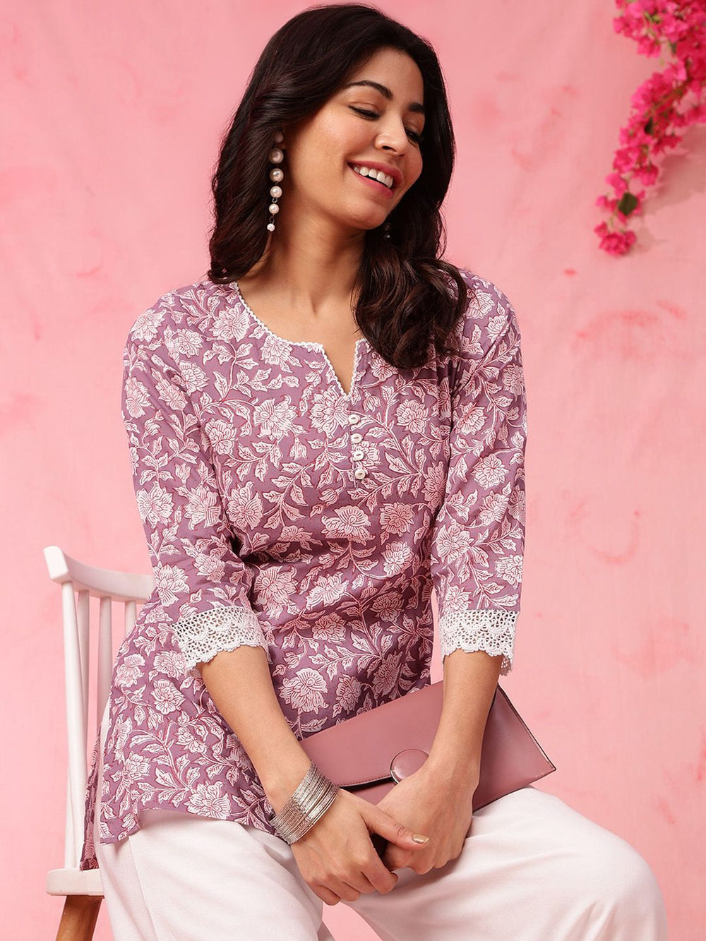 This comfortable short kurti blends classic ethnic motifs with pure cotton for breathable everyday wear.
