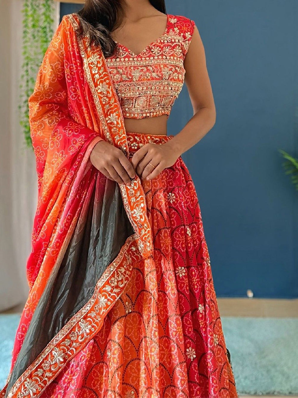 Style: Embroidered and sequinned lehenga choli set with unstitched blouse