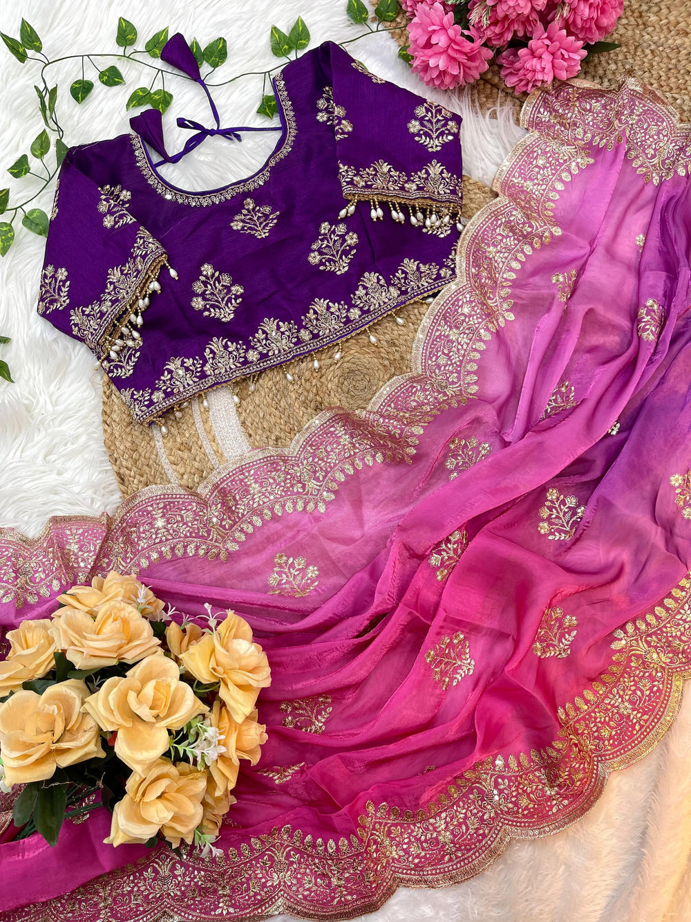 • Style: Saree with embroidery and sequin work