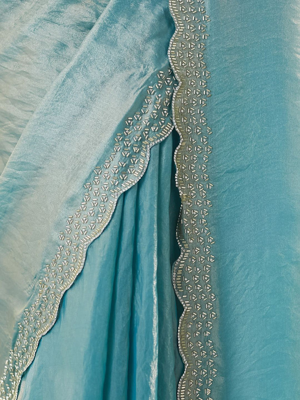 • Style: Solid saree with embroidered border, beads and stones detailing