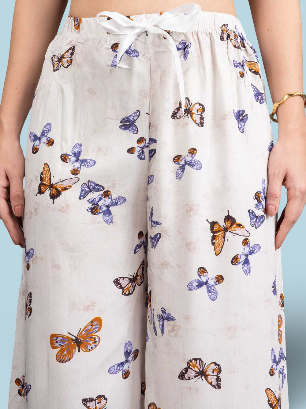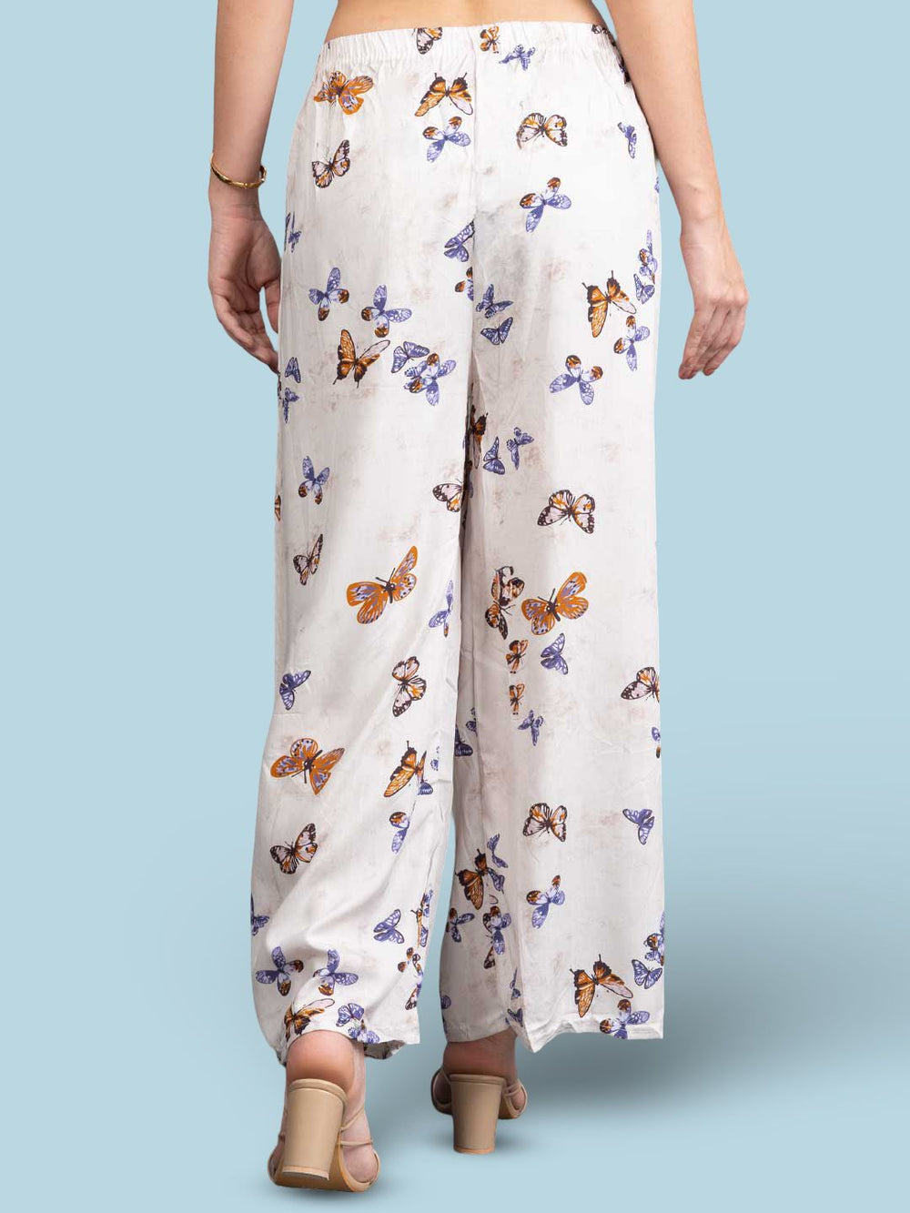 Add a playful touch to your wardrobe with these butterfly-printed palazzos, designed for all-day comfort and effortless style.